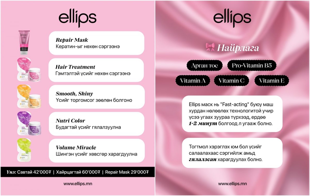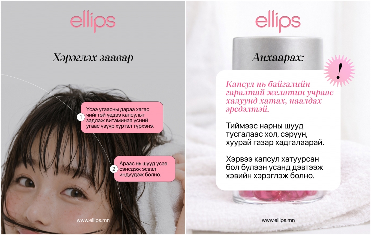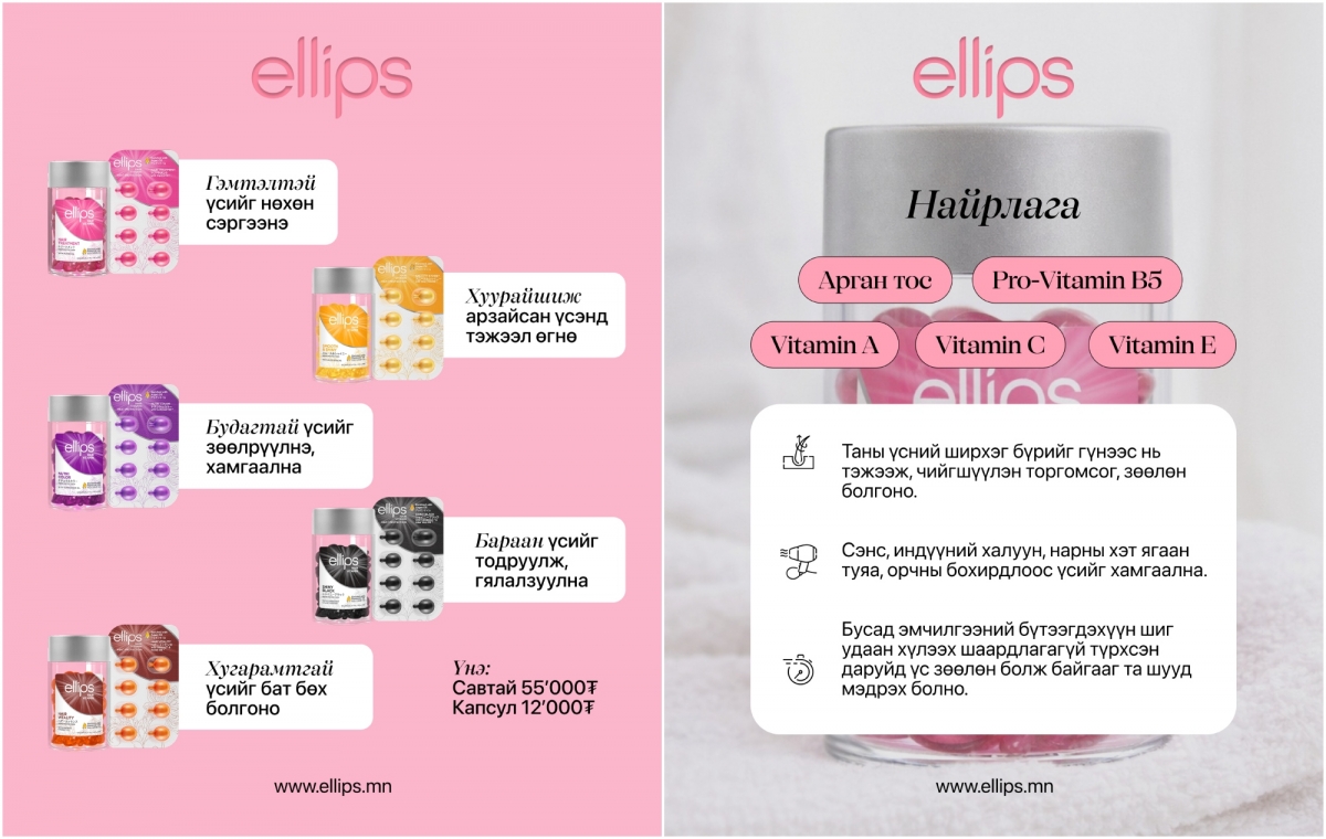 Хахир өвлийн цагт хүний бие төдийгүй үс ч бас аминдэмээр дутагдаж, намирсан байдлаа алддаг. Тиймээс бүсгүй таныг ирж буй хаврын улиралд өөртөө итгэлтэй, гялалзсан үстэй алхахад туслах зургаан зөвлөгөөг Ellips брэндтэй хамтран хүргэж байна.