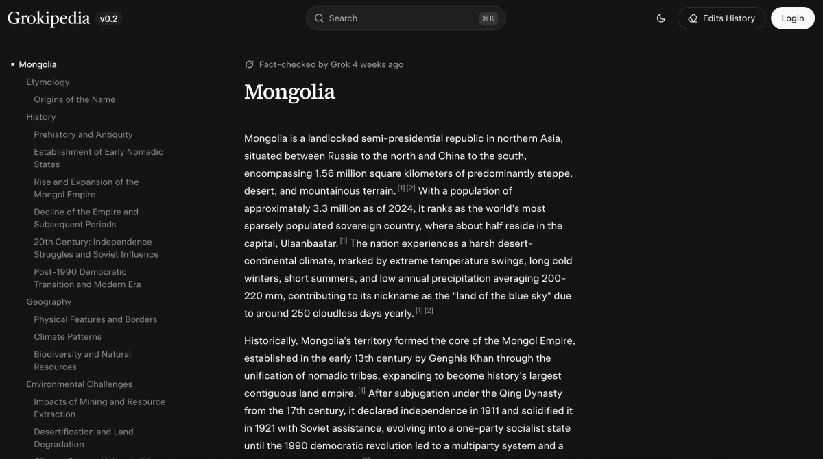 Хүн төрөлхтний “сайн дурын” цахим нэвтэрхий толь болсон Wikipedia өдгөө нийт долоон сая гаруй сэдэвтэй гэгддэг. Тус толийг хэн ч засварлаж, өөрчилж, шинэ сэдвээр бичиж болдгоороо тун онцлогтой бөгөөд өдий хүртэл хэдэн сая тооны сайн дурын модератор, бичээчид Wikipedia-г тасралтгүй хөгжүүлсээр ирсэн байдаг. 2001 оны нэгдүгээр сарын 15-ны өдөр Wikipedia дэлхий дахинд нээлтээ хийж байсан бол хорин дөрвөн жилийн дараа буюу энэ оны аравдугаар сарын 27-нд түүний “анхны өрсөлдөгч” гэхэд хилсдэхгүй “Grokipedia” мэндэлж багагүй шуугиан тарив.