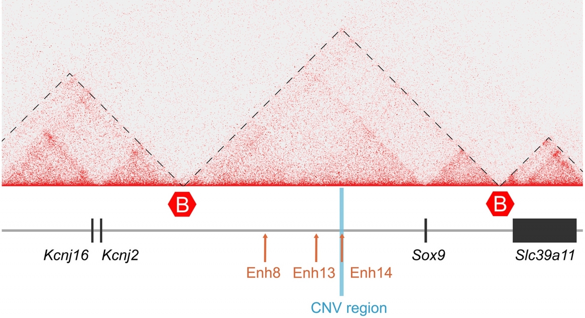 Геномын дарааллыг хамгийн түрүүнд тогтооно. Хүйсийг тодорхойлоход хамгийн чухал геномын хэсгийг олохын тулд судлаачид SNPs (нэг нуклеотидийн полиморфизм) болон CNVs (хувилагдсан тооны вариаци)-ийг онилж ажиглав. Энэ хоёр төрлийн вариаци нь генүүд хэрхэн илэрч эсвэл үйлчилдэгт нөлөөлж болох учраас хүйсийг тодорхойлоход чухал үүрэгтэй генийн хэсгүүдийг олоход эдгээр нь чухал дохио болж өгнө. Дараа нь эдгээр хэсгийн бүтэц, үйл ажиллагааг судлахын тулд тэд фибробласт эсүүд дээр Hi-C шинжилгээ хийнэ. Ингэхдээ Sox9 болон уг генийн ойролцоох энхансер буюу идэвхжүүлэгч хэсгүүдийн нөлөөг судлах гэж хулганын өндгөн эсэд тодорхой ДНХ-ийн хэсгүүдийг суулгах бичил тарилгын аргыг ашигласан аж.