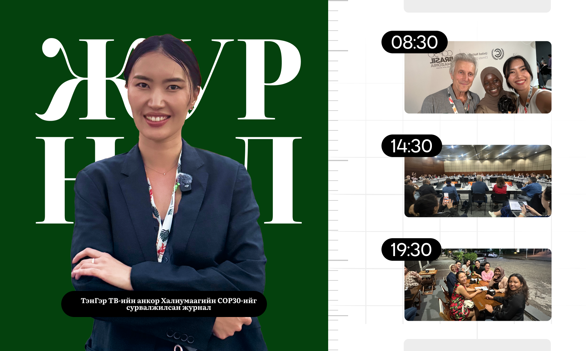 Сайн уу? ТэнГэр ТВ-ийн анкор, продюсер Халиумаа байна. Энэ сард надад Earth Journalism болон Stanley Center-ийн хамтарсан UNCCMP Fellowship хөтөлбөрт хамрагдан дэлхийн хамгийн том уур амьсгалын өөрчлөлтийн эсрэг хурал буюу COP30 хуралд оролцох боломж олдсон юм. Уг хөтөлбөр нь дэлхийн хөгжиж буй орнуудын сэтгүүлчдийг тэтгэлэгт хамруулан, уур амьсгалын өөрчлөлтийн талаар мэдээлэл түгээх үндсэн зорилготой НҮБ-ын хөтөлбөр.