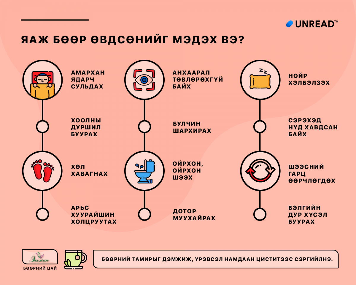 Танд бөөр, нуруугаар хөшиж өвдөх, шалтгаангүй халуурах, ойрхон шээх, шээхэд зовиуртай байх, өглөөд нүд хавдах, шээс… https://t.co/7YDG6XZ26N