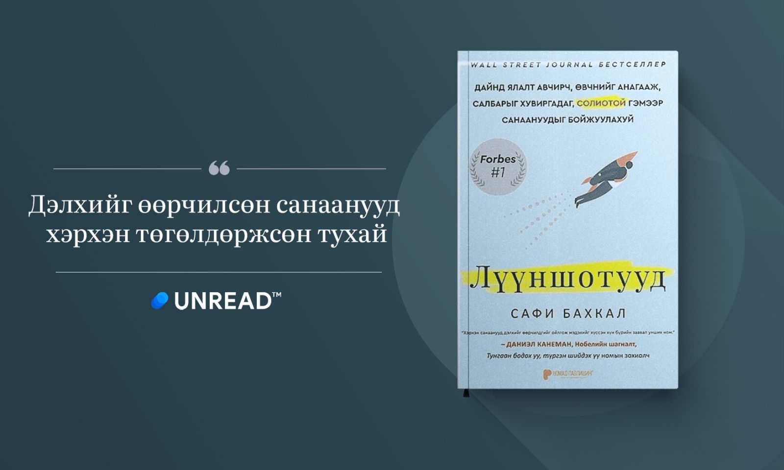 “Лүүншотууд” ном таны санаа, сэдэл бодит ажил болон хэрэгжихэд хөтөч болно. Мөн инновац, бүтээлч сэтгэлгээ, байгууллагын соёлын жинхэнэ үнэ цэнийг ойлгоход тусалж, таны доторх “Лүүншотыг” өөрөөр хэлбэл галзуу мэт мөрөөдлөө хөгжүүлэхэд урам зориг өгнө.