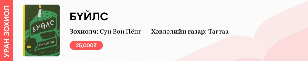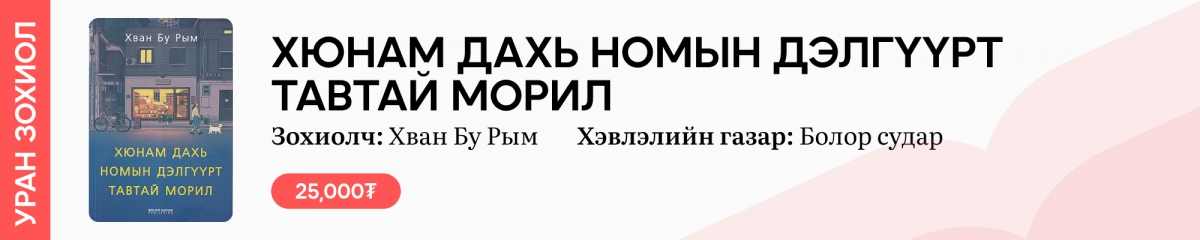 Зохиолч, хэвлэн нийтлэгч, уншигчдын уулзах цэг, учрах тохиол болсон Номын баяр ийнхүү 38 дахь удаагаа улсын маань нийслэл Улаанбаатар хотын төв талбайд зохион байгуулагдах гэж байна. Бид уламжлал ёсоороо уншихуйд тань хөтөч болохоор Үндэсний Номын баяраар худалдаалагдах, ойрмог гарсан онцгой бүтээлүүдээс дээжлэн хүргэж буйг хүлээн авна уу.