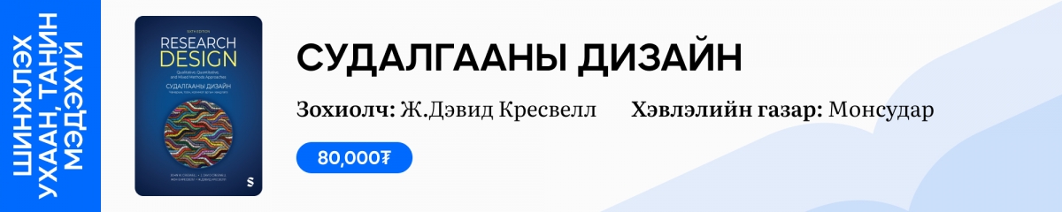 Судалгааны аргыг тоон, чанарын, холимог хэмээн гурав хуваадаг. Эдгээрт ямар ямар судалгааны арга багтах уу, судалгааны ажил эхлэхийн өмнө юу юуг төлөвлөх үү, ямар асуулт тавих уу, хэрхэн өгөгдөл цуглуулах вэ гэх мэт судалгаатай холбоотой нарийн ширийн бүхнийг эхнээс нь зааж өгөх ном бол Жон В.Кресвеллийн "Судалгааны дизайн: Чанарын, тоон, холимог аргын хандлага" ном юм. Хэвлэлийн газрын зүгээс, тус номыг "эрдэм шинжилгээний сэтгүүлийн өгүүлэл, докторын диссертаци, магистрын дипломын ажлын төсөл, саналыг боловсруулах гэж буй болон судалгааны санхүүжилтийн төлөвлөгөө гаргахад арга зүйн дэмжлэг шаардагдаж буй оюутан, судлаач, багш хэн бүгдэд зориулсан" хэмээжээ.