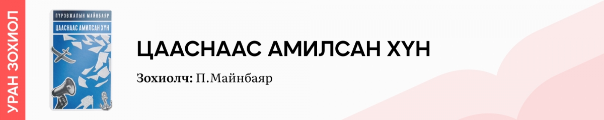 Зохиолч П.Майнбаярын ээлжит хүүрнэл зохиол "Цааснаас амилсан хүн" бүтээл хэвлэгджээ. П.Майнбаяр нь “Шар навчны сүнс", "Сарны бичээс” тэргүүтэй 10 гаруй яруу найргийн түүвэр, “Хагас нь эс хагас нь элс” нэртэй хүүрнэл зохиолын номтой. Энэ удаагийн бүтээл нь өнгөрсөн ба одоо цагийн уялдаа холбоог хүний оршихуй, дотоод ертөнцийн тэмцэлтэй холбон хүүрнэсэн гэдгээрээ онцлог аж.
