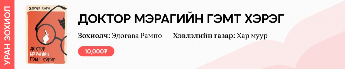 Японы Эдгар Аллан По хэмээн нэрлэгддэг, нууцлаг, детектив, триллер зохиолуудаараа алдартай Эдогава Рампог уншигчид маань “Хүн сандал”, “Сүүдэрт гэтэх албин” зэрэг номоор нь сайн мэдэх болов уу. Тэгвэл энэ удаа Хар муур хэвлэлийн газраас Когоро Акэчи хэмээх мөрдөгчтэй цувралын нэгэн дэвтэр болох “Доктор Мэрагийн гэмт хэрэг” номыг орчуулан хэвлэжээ. Когоро Акэчи нь Шерлок Холмсын нэгэн адил Японы детектив зохиолын бэлгэ тэмдэг болсон дүр бөгөөд тус мөрдөгчийн тухай 6-7 томоохон зохиол байдгийн нэг нь эл бүтээл юм.