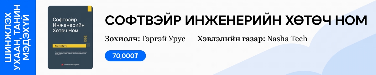 Технологийн салбарын хамгийн алдартай блоггер, Үбэр (Uber), Скайп (Skype), Майкрософт, Скайсканнер (Skyscanner) зэрэг компанид ажилласан хур их туршлагатай инженер, технологийн салбарын хамгийн алдартай блоггер Гэргэй Урусын “Софтвэйр инженерийн хөтөч ном” монгол хэлнээ орчуулагдан гарсан билээ. Тус ном нь софтвэйр (программ хангамжийн) инженер болон инженерүүдийн менежментийн ойлголтыг түгээн дэлгэрүүлж, тэдгээр хүмүүст тулгамдаж буй асуудлуудыг шийдэх, гаргалгааг олж харахад туслах зорилготой юм.