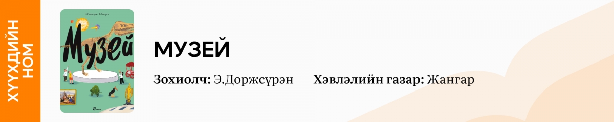 Хүүхдийн номын Жангар редакц нь “Энэ бол Улаанбаатар”, “Төмөр зам”, “Эх орон” тэргүүтэй танин мэдэхүйн цуврал гаргадаг бөгөөд хамгийн сүүлд “Музей” номоо гаргасан билээ. Энэхүү номд музей гэж юу болох, үүсэл хөгжлийн түүх, Монгол ба дэлхийн алдарт музейнүүд, музейд байдаг үзмэрийг хэрхэн бэлддэг зэрэг агуулгыг багтаасан тул уншигч хүүхдүүд музейн талаар ойлголтыг нэг дороос, цэгцтэй, бас сонирхолтой байдлаар мэдэж авах боломжтой юм.