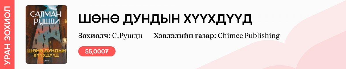 Английн нэрт зохиолч Салман Рушдитай бид “Хутга” зохиолоор нь дамжуулан танилцаад байгаа билээ. Тэгвэл энэ удаа “Шөнө дундын хүүхдүүд” бүтээлийг нь Chimeebooks хэвлэлийн газраас хэвлэн гаргаж буйг онцолж байна. Тус зохиолоор 2012 онд Канадын найруулагч Дипа Мегта кино хийж, “Toronto international film festival”-д олон улсын үзвэр болгон гаргажээ. Дээрх ном нь шөнө дундад төрсөн эгэлгүй хүүхдүүдийн үйл явдлыг Энэтхэгийн улс төрд болж байсан бодит түүхтэй холбогдуулан шидэт реализмаар бичсэн аж.
