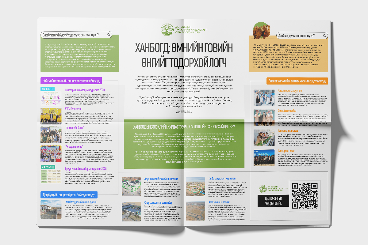 Бид хэрхэн ажилладаг вэ? - Ханбогдын хөгжлийн хурдасгуур Оюу толгойн сангийн хамт олон: Тэд Өмнөговь аймгийн Ханбогд сумын төвийг аюулгүй, гэр бүлд ээлтэй, тогтвортой хөгжил бүхий орчин үеийн суурин болгон хөгжүүлэх эрхэм зорилготой. Унших