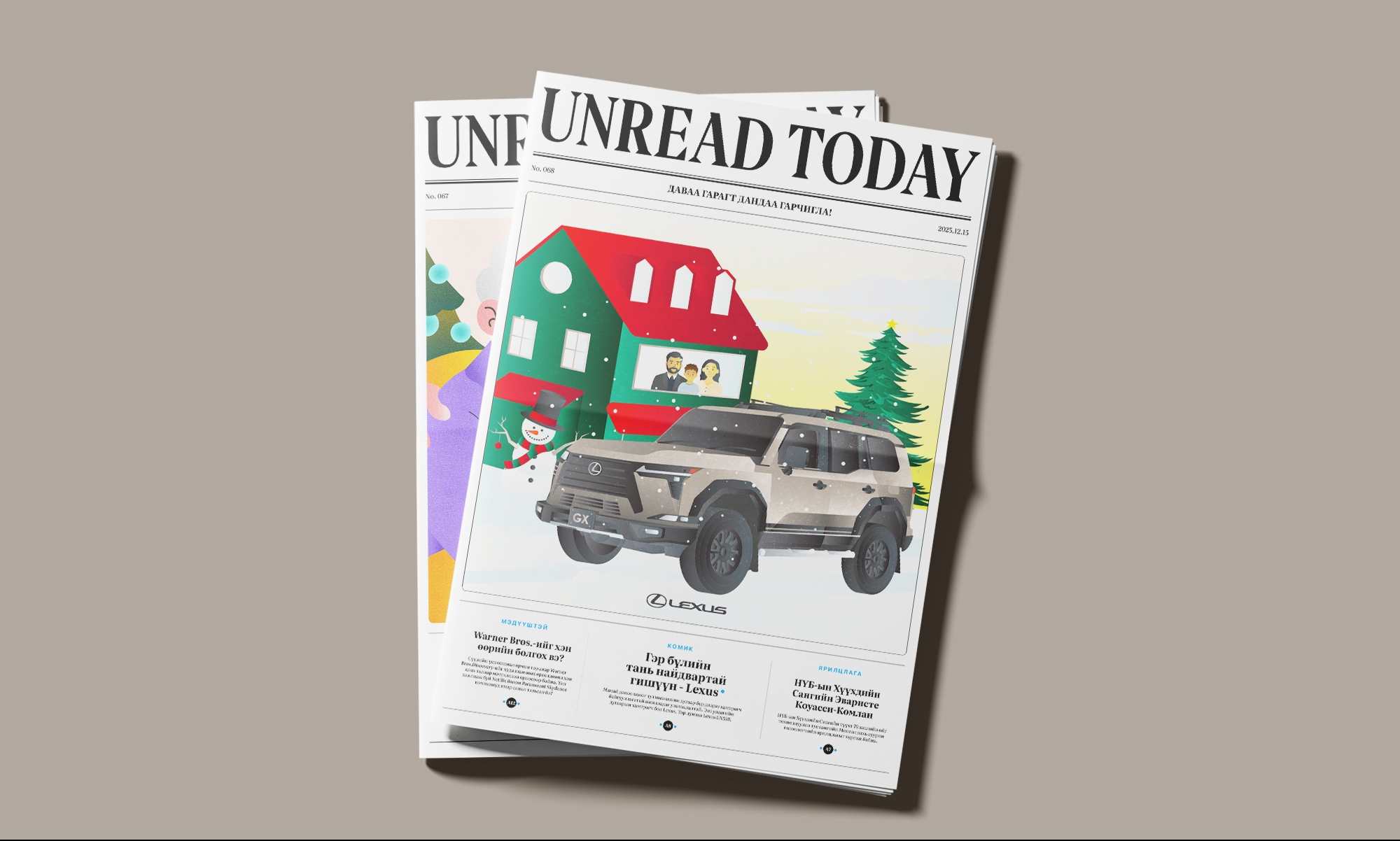 Манай долоо хоног тутмын сонин дугаар бүрээ хамтрагч байгууллагатай хийдэг уламжлалтай. Энэ удаагийн дугаарын хамтрагч бол Lexus. Тэр дундаа Lexus GX550 загварын төмөр хүлгийг онцолж, ковер зурагтаа болон голын нүүрдээ дүрсэллээ. Автомашинаа солих гэж буй бол “Гэр бүлийн тань найдвартай гишүүн болох” GX550 загварыг сонирхоод нэг үзээрэй.