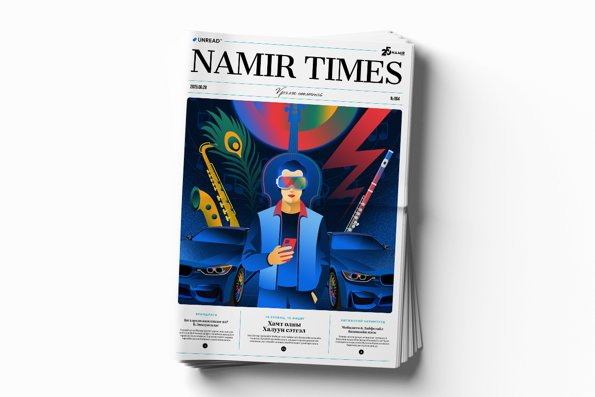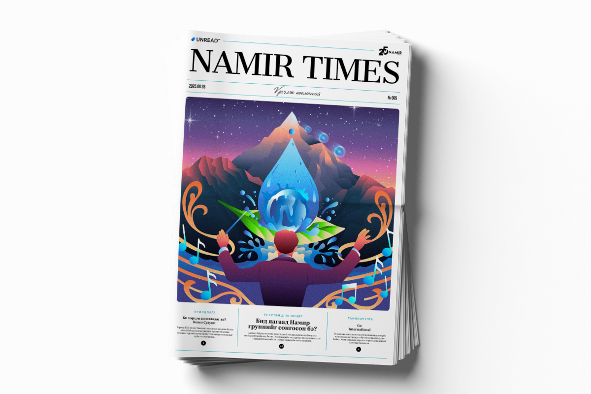 Тэдний нэг нь Намир групп. Өнгөрсөн хавар бидэнтэй уулзаж, түүх бичсэн 25 жилийн ойгоо утга учиртай биет бүтээл болгон үлдээхийг хүсэж байгаагаа илэрхийлсэн юм. Харин бидний зүгээс найман нүүрт тусгай сонин хамтран бүтээх санал тавьсан ба тэрхүү таван дугаар сонин хэдийн эздэдээ хүрсэн билээ.