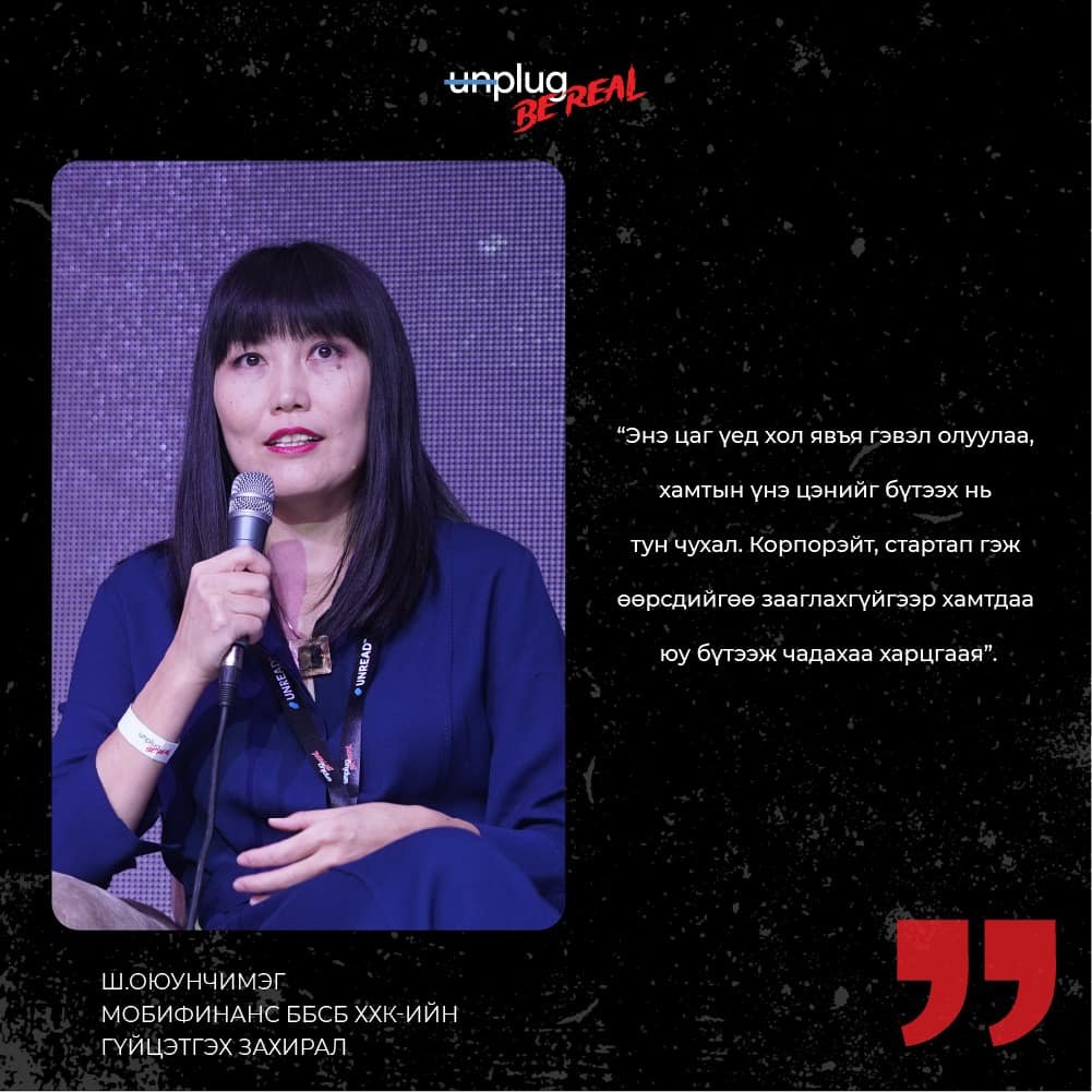 "Unplug"-ийн тодотгол хэсэг бол утга учиртай хэлэлцүүлгүүд. Бид энэ удаа “Бодит бай, үнэн бай” гэх санаан дор ажил, бизнесийн талбарын удирдах ажилтнууд, тэргүүлэх мэргэжилтнүүд, стартап байгуулагчдыг урьж өнөө цаг үеийн хүндрэл бэрхшээл, сорилтууд хийгээд боломжуудын тухай хэлэлцлээ.