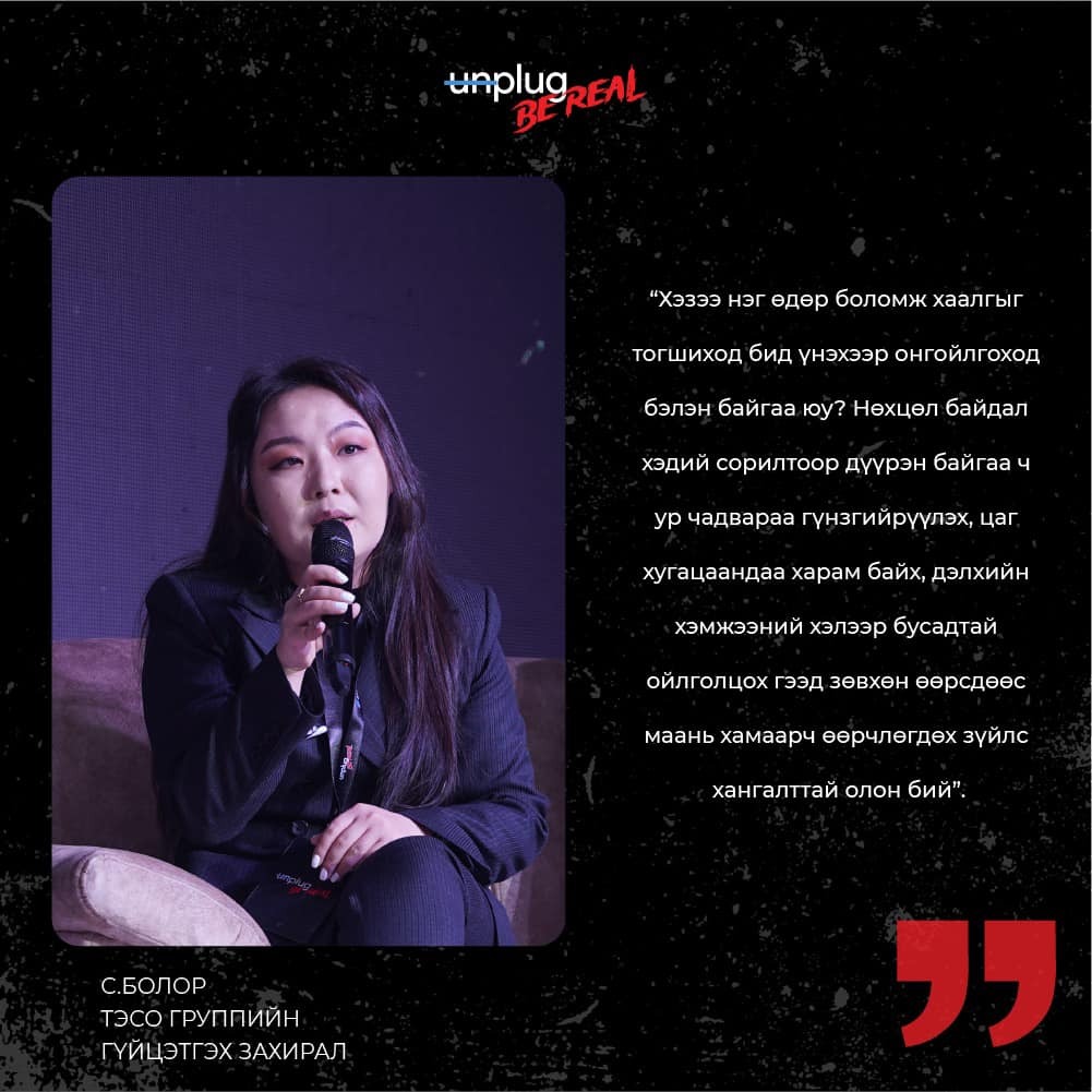 Монголын залуу мэргэжилтнүүдийг нэг дор нэгтгэж, “утга учиртай хэлэлцүүлэг” өрнүүлэх талбар болсон Unplug арга хэмжээ цар тахлын дараа эргэн ирж, “Be Real” буюу “бодитой бай, үнэн бай” гэх санааг түгээж, энэ цаг үеийн хамгийн анхаарал татсан, хэлэлцвэл зохих сэдвүүдийг хөндлөө.