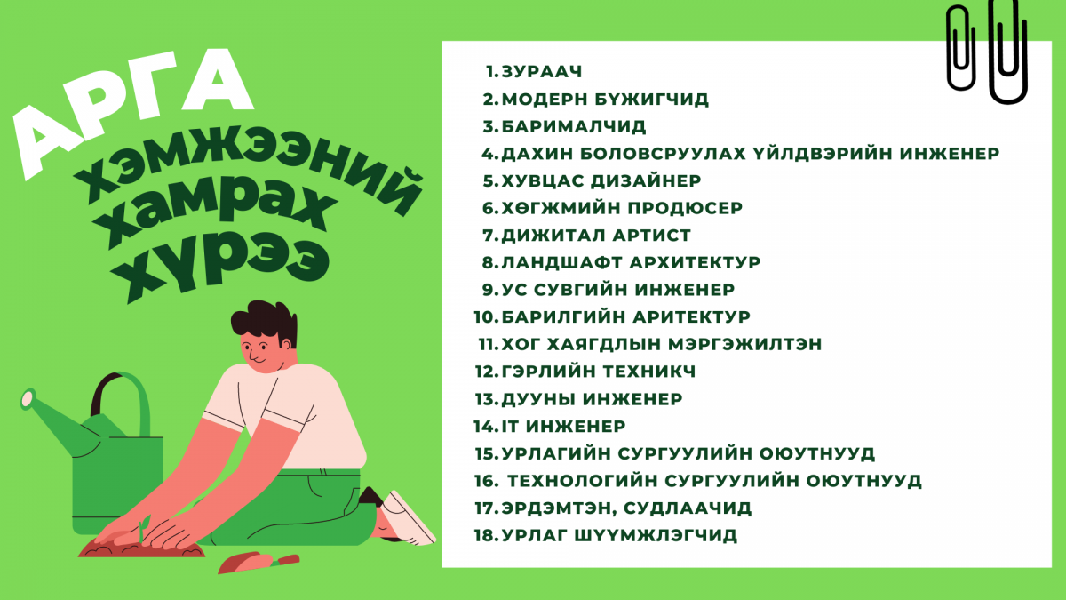 2. урлаг соёлын зүтгэлтэн, технологийн мэргэлжилтэн, судлаачид, бүгдэд