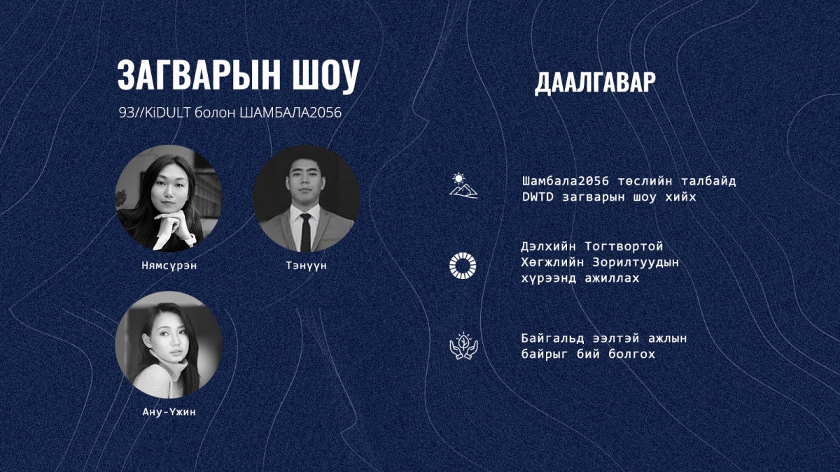 Арга хэмжээний үеэр “Kidult-93” брэнд цөлжилтийн эсрэг уриа бүхий хавар, зуны цуглуулгаа онлайн загварын шоугаар танилцуулах аж. Түүнчлэн, ойрын жилүүдэд загварын ертөнцөд өргөн яригдах сэдэв болсон байгальд ээлтэй хувцаслалтын талаар “Urongooider” брэнд илтгэл тавихаар төлөвлөжээ.
