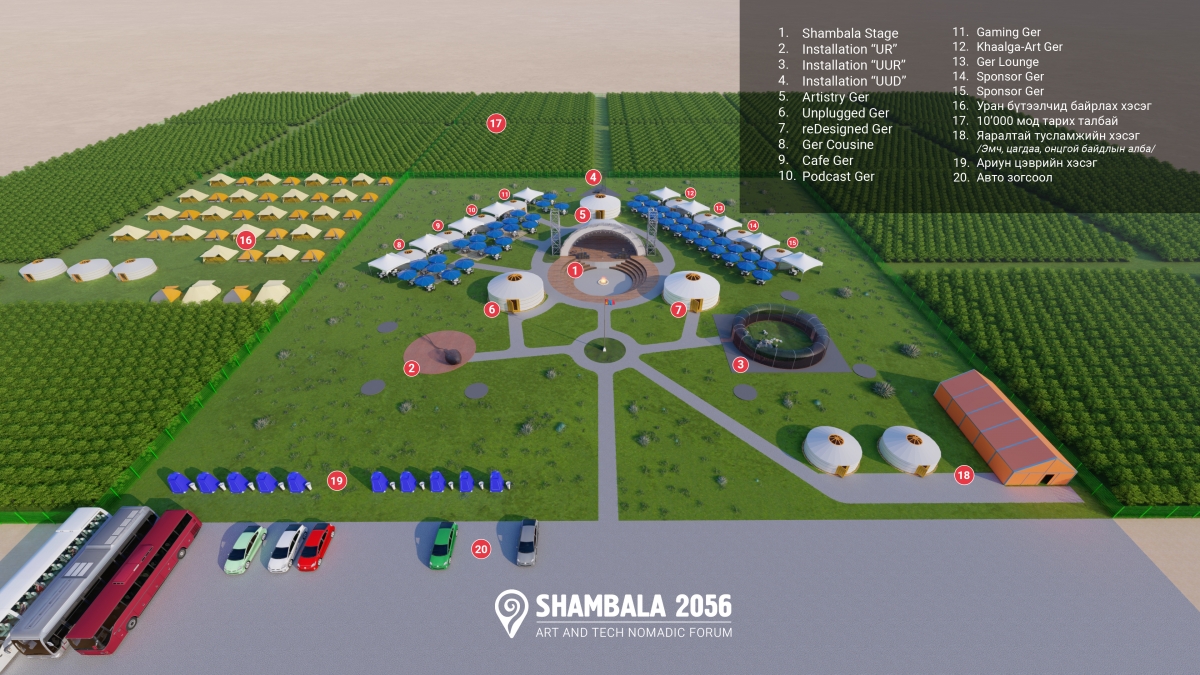 Эцэсгүй мэт үргэлжлэх манан шаргал говийн хязгаарт хот сүндэрлүүлэхээр зорьсон “Шамбала 2056” төслийнхөн тавдугаар сард "Шамбала 2056: Урлаг ба технологи нүүдэлчдийн форум" арга хэмжээг зохион байгуулахаар төлөвлөжээ. Энэхүү арга хэмжээний үеэр, хүрээлэн буй орчинд тулгамдаад буй асуудлуудлыг шинжлэх ухаанч өнцгөөс хэлэлцэх бөгөөд тэдгээр асуудлыг технологийн дэвшлийн тусламжтайгаар олонд таниулахыг зорьж буй аж. Ийнхүү шийдэл эрэлхийлэхдээ залуу уран бүтээлчдийн бүтээлүүдийг ашигласан нь сонирхолтой.