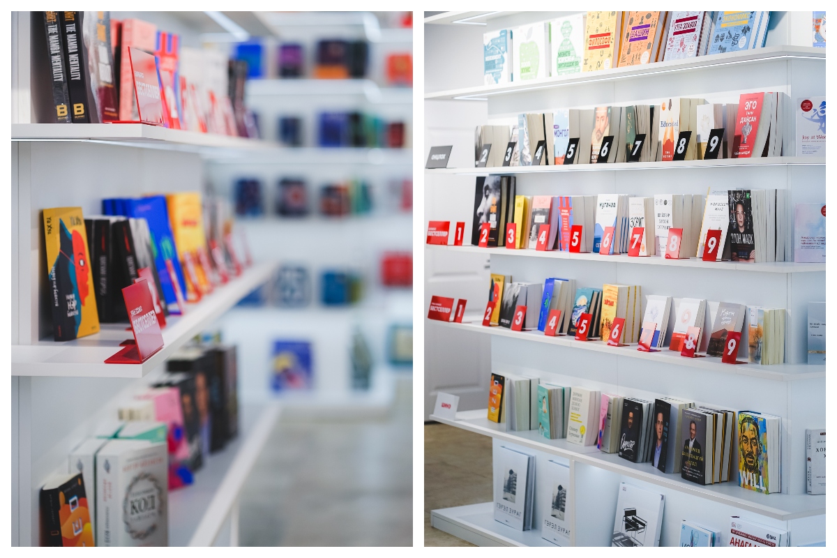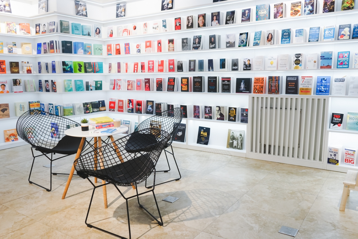 Номын дэлгүүр болон кофе шопын уламжлалт бизнес моделиос аль болох зайлсхийсэн. Тийм ч учраас бусадтай өрсөлдөх бус харин яаж хоршиж болох талаас нь бүх зүйлээ бодолцоод явж байна. Дээр нь манай үндсэн ялгарал гэвэл маш цөөхөн буюу 350-400 нэр төрлийн, хамгийн сүүлийн үеийн, сайн номуудыг өмнөөс нь сонголт хийгээд хүмүүст санал болгож буй байдлаар (curated) байршуулж байгаа. 400 гэдэг тооноос хэтрүүлэхгүй барина. Тэгэхээр бүх номыг дэлгүүртээ авах боломжгүй гэсэн үг. Нэгэнт бүх ном маань чанартай, онцгой учраас нуруулдаж бус хавтсаар нь нааш нь харуулж, чихэлдүүлэхгүй, орон зайтай, мөн ном бүр дээр гэрэл тусгаж өрөлт дээрээ маш их анхаарсан. Хэрэглэгчид номыг хавтсаар нь санах нь түлхүү байдаг учраас уран зохиол, намтар гэдэг шиг ангилал үүсгэлгүйгээр номуудаа хавтасны өнгөөр нь ялгаж өрсөн байгаа. Товчхондоо үнэ цэнтэй, номын галерей үзээд гарч байгаа юм шиг мэдрэмжийг хүмүүст өгөхийг хичээсэн.