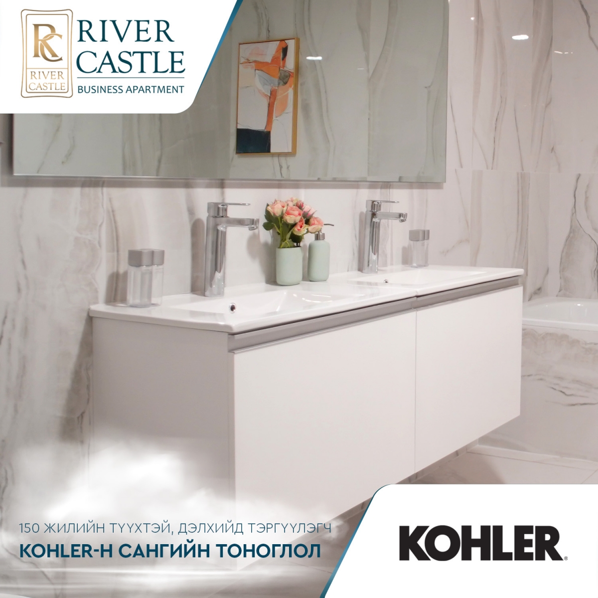 Хоёрдугаарт, бид чанартай бүхнийг сонгож, River Castle-ийн бүхий л талбайд тансаг зэрэглэлийн тавилга, эд хэрэгслийг байршуулав. Жишээлбэл, АНУ-ын 150 жилийн түүхт, дэлхийд тэргүүлэгч KOHLER сангийн тоноглол, Бельги Улсын алдарт REYNAERS брэндийн хэсэгчилсэн шилэн фасад, Герман Улсын TYSSEN KRUPP брэндийн ганжуулсан цахилгаан шат, Испани Улсын чанар дизайнаар тэргүүлэгч PORCELANOSE брэндийн плита, цахилгаан эрчим хүчний чиглэлээр дэлхийд тэргүүлэгч SIEMENS брэндийн цахилгааны тоноглолоор тус тус тоноглосон.