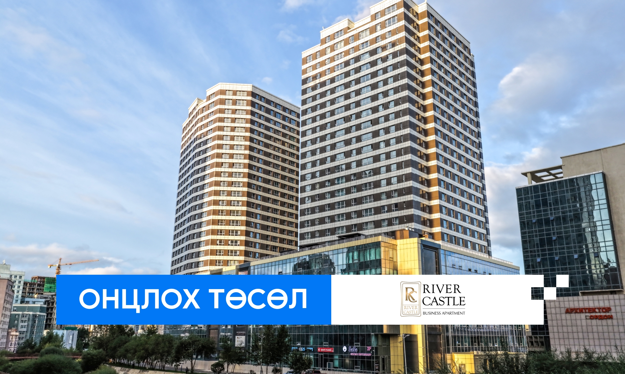 Хотын А зэрэглэлийн бүсэд сүндэрлэж буй RIVER CASTLE нь оршин суугчдын тав тух, чанарыг дээдэлсэн 26 давхар бизнес зэрэглэлийн орон сууц юм.