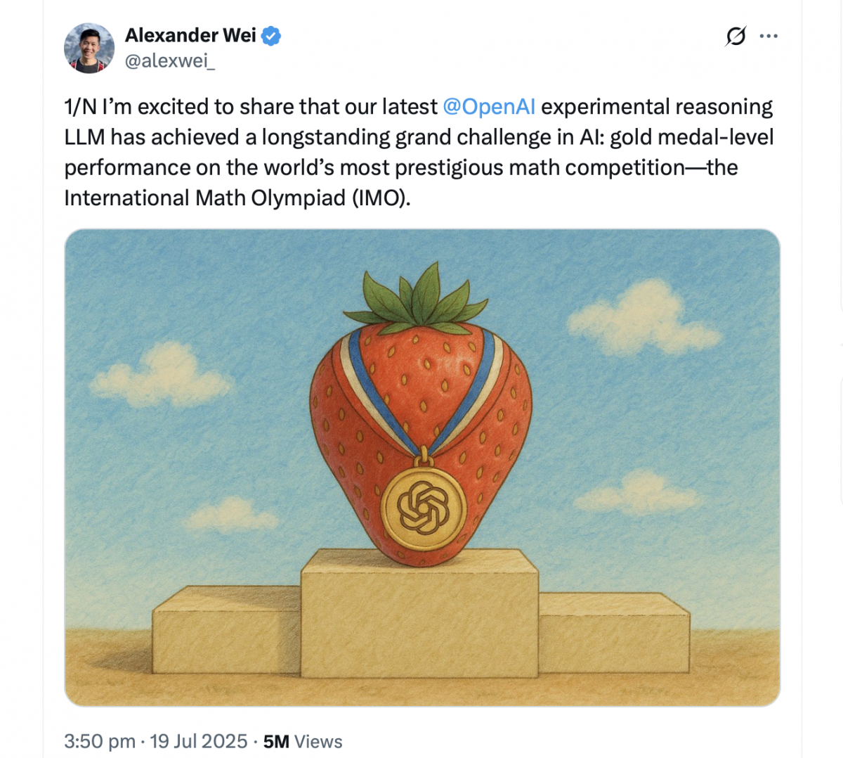 Үүнээс гадна, ChatGPT Олон улсын математикийн олимпиадаас (IMO) алтан медаль хүртэх түвшинд ирж дахин нэг удаа дэлхий нийтийг алмайрууллаа. OpenAI-ийн “боддог” хиймэл оюуны загвар ямар ч хүний туслалцаагүйгээр IMO-ийн зургаан бодлогын тавыг нь бодож чаджээ. Сонирхуулахад ганцхан жилийн өмнө тус олимпиадын бодлогыг хиймэл оюунаар бодуулах 10 сая долларын шагналын сантай уралдаан зарлагдаж байсан билээ.