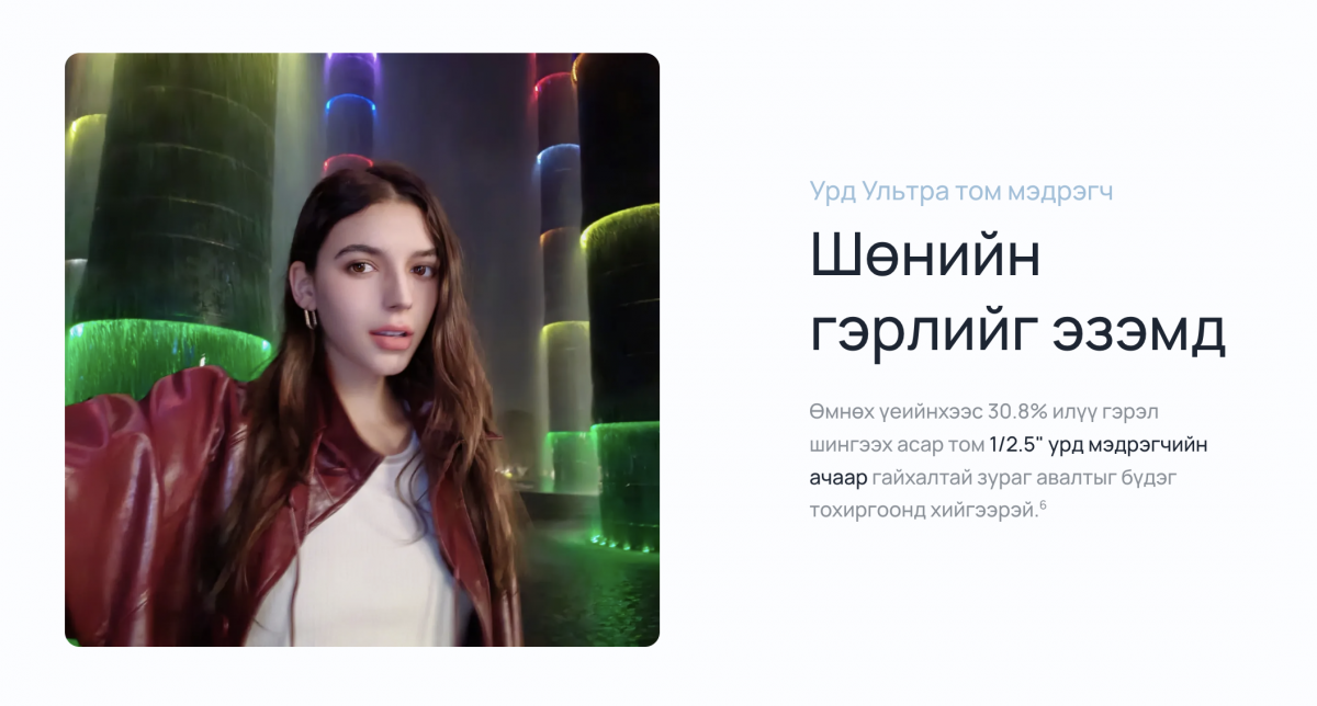 Салбартаа анхдагч 50MP хөрөг зургийн хос урд камер, 1.5 сая өнгөний ялгарал бүхий Ультра Хрома камер, олон фокуст хөрөг зургийн үндсэн камер, супер турбо цэнэглэлт, тасралтгүй хэрэглээг хангах хүчирхэг батарей зэрэг үзүүлэлт, хүчин чадлыг нэг дор цогцлоожээ.