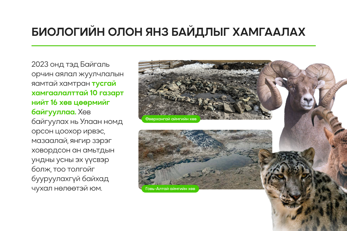 Байгалийн чулуу, чулууны цавуу, үл нэвчүүлэх геомембранаас бүрдэх энэхүү хиймэл цөөрөм нь хур тунадсыг цуглуулж хадгалснаар зэрлэг амьтдын ундны усны эх үүсвэр болдог. Ийнхүү амьтдын амьдрах орчныг сайжруулах, экологийн тэнцвэрт байдлыг сэргээх нь тус компанийн нийгмийн хариуцлагын хүрээнд хийгдэж буй чухал ажлуудын нэг болжээ.