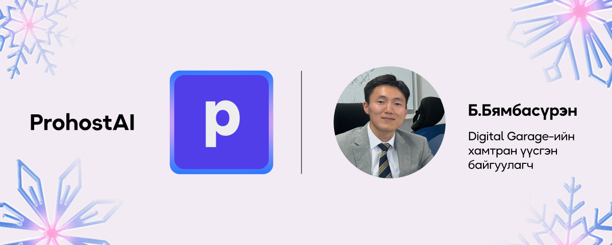 Prohost AI нь Airbnb болон бусад богино хугацааны түрээсийн үйлчилгээ (Short-term rental) эрхлэгчдэд зориулсан хиймэл оюунд суурилсан удирдлагын систем хөгжүүлдэг технологийн стартап.