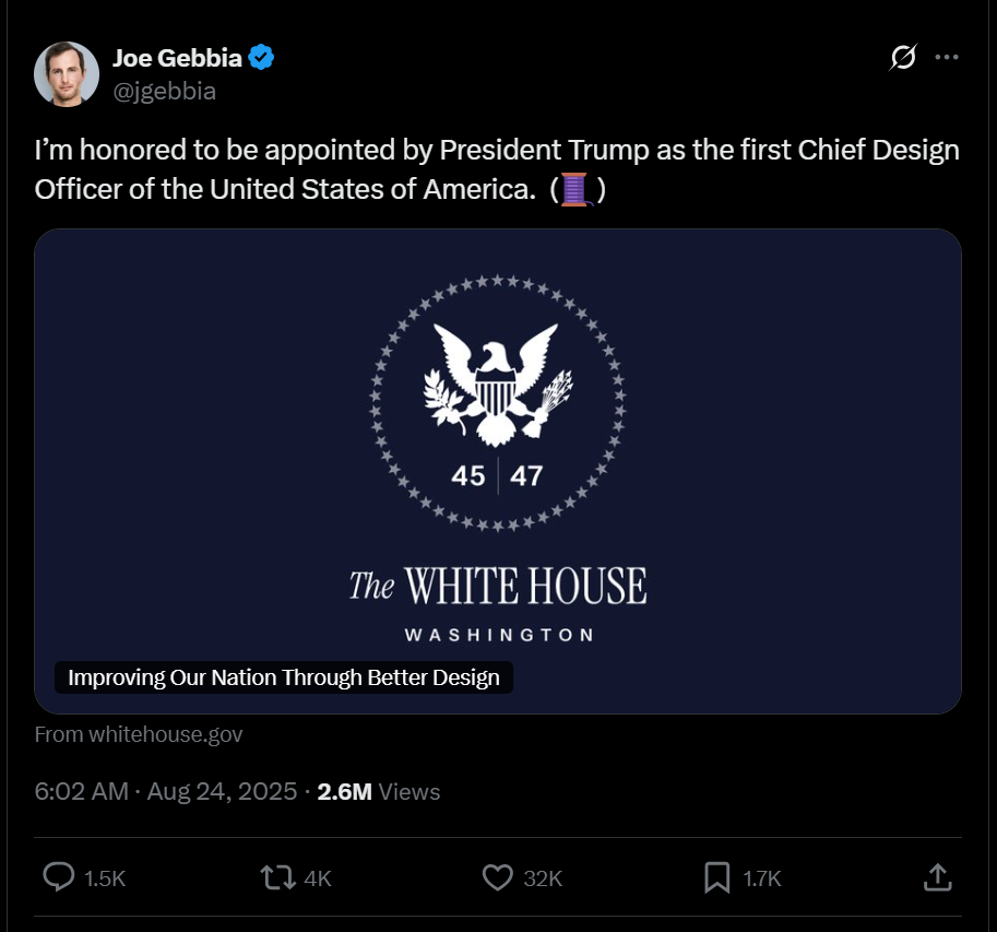 - Д.Трампын зарилгаар Airbnb-ийн үүсгэн байгуулагч Ж.Геббиа тус албанд томилогдсон байна. Тэрээр Америкийн засгийн газарт харьяалагддаг 26 мянган вебсайтын UX/UI дизайн, дизайн систем, бүтцийг шинэчилж, өнгө төрх, хэв маягийг тодорхойлох гэнэ.