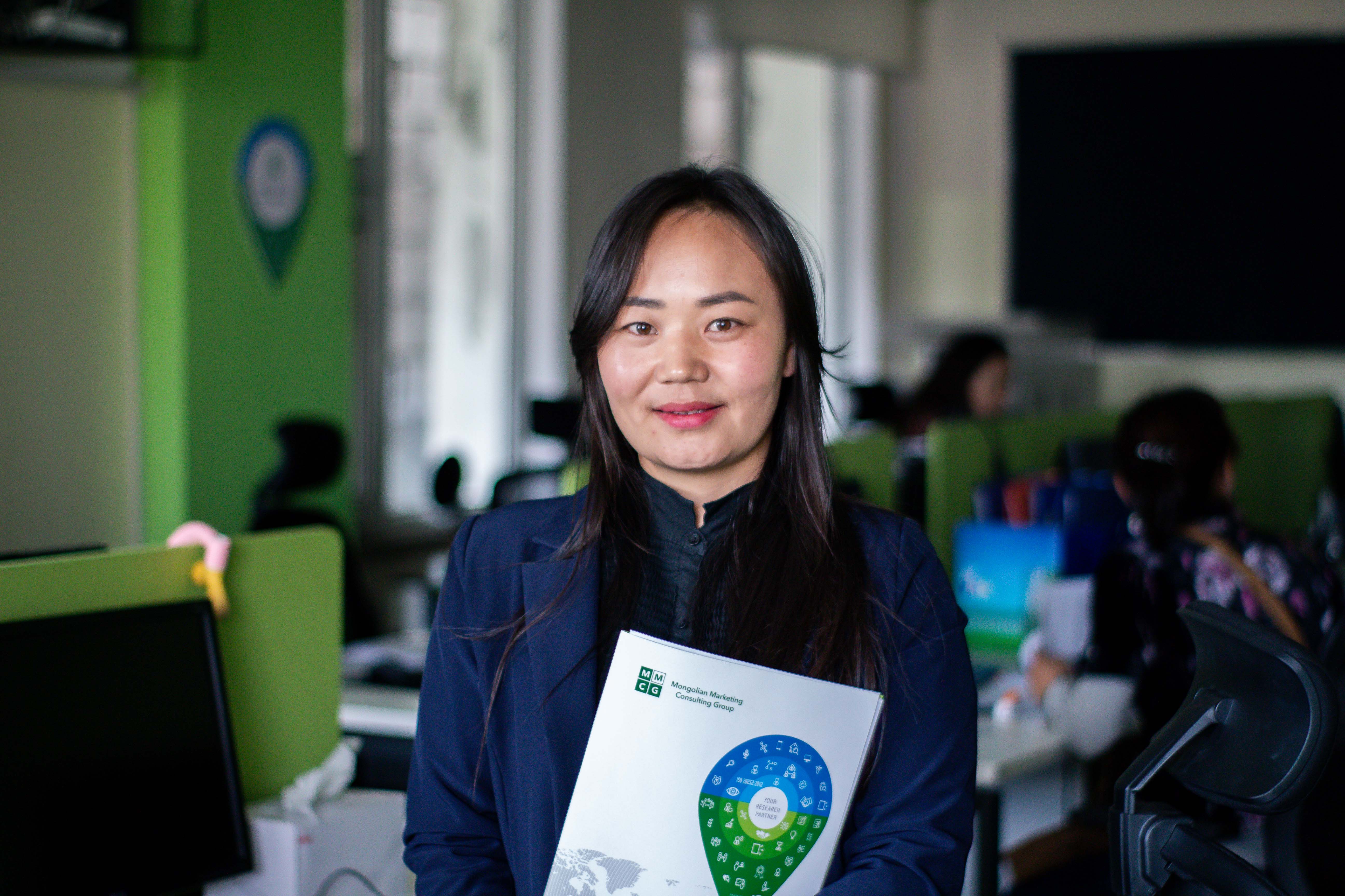 Би дөнгөж сургуулиа төгсөөд байгаа залуу мэргэжилтэн. Анх удаа л олон улсын стандартад нийцсэн судалгааны байгууллагад үндсэн ажилтнаар ажиллаж байгаа маань энэ. Оюутан байхдаа MMCG-ээс зохион байгуулсан уралдаан, тэмцээн, сургалтуудад хамрагдаж байгууллагын тухай ерөнхий мэдээлэлтэй болсон байсан нь анкетаа өгөхөд түлхэц болсон. Төгсөөд хэд хэдэн газар ажлын ярилцлагад орж бизнес, маркетингийн судалгаагаар мэргэшиж ажиллахаар шийдээд MMCG компанид судлаачаар орсон. Судалгааны хяналт, бүртгэлжүүлэлт зэрэг бүх л үе шатанд олон улсын стандартыг баримталж ажилладаг болохоор туршлага сайн хуримтлуулах юм шиг санагдсан.